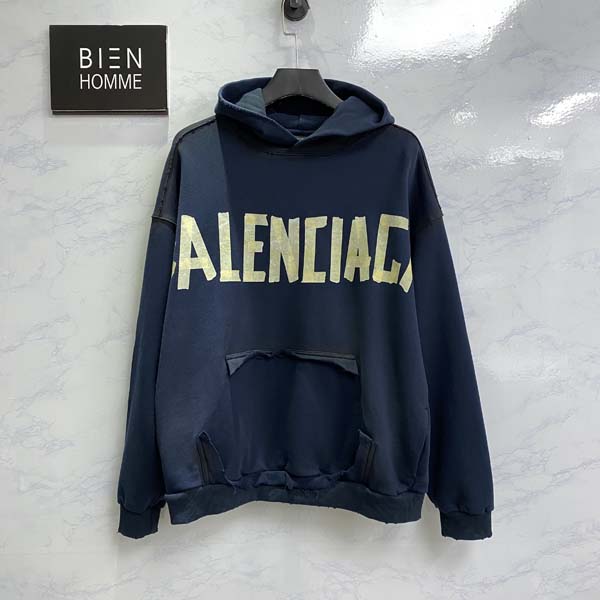 발렌시A가 테이프 로고 오버핏 워시드 후드티 (1:1 HIGH PREMIUM)