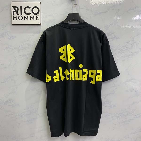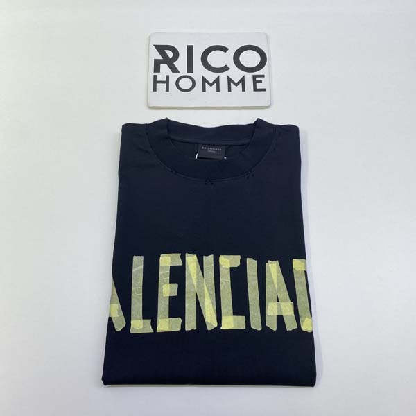 발렌시A가 테이프 타입 워시드 반팔 티셔츠 (1:1 HIGH PREMIUM)