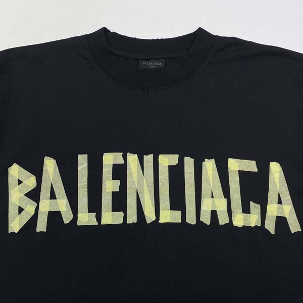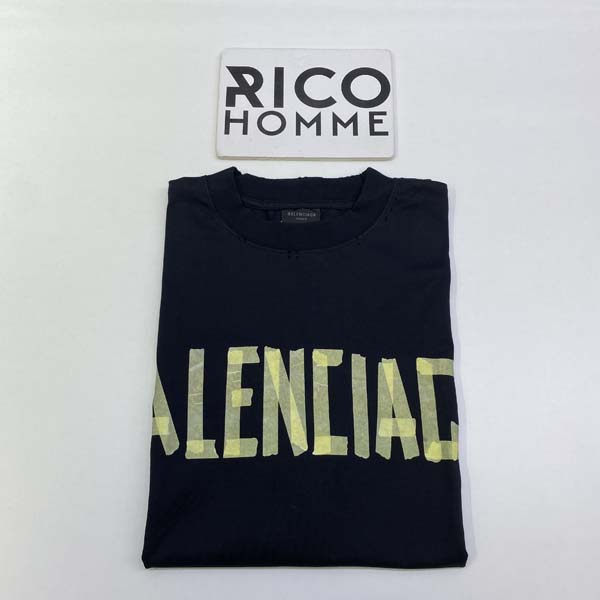 발렌시A가 테이프 타입 워시드 반팔 티셔츠 (1:1 HIGH PREMIUM)