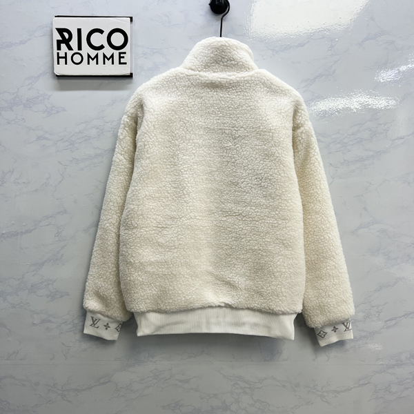 루이B통 레더 패치 플리스 블루종 자켓 화이트 (1:1 HIGH PREMIUM)