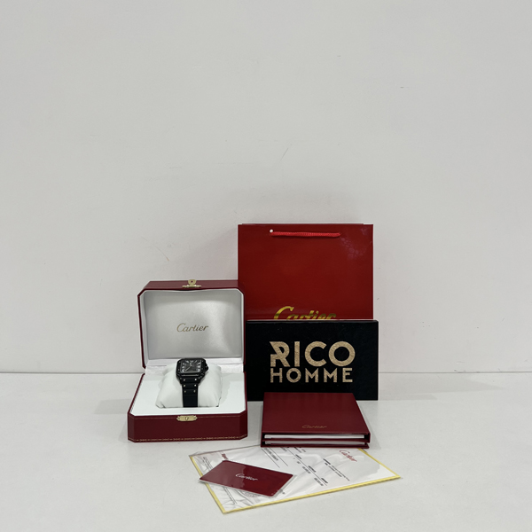 까르*에 산토스 올블랙 (다크워리어) 러버밴드 라지 47.5mm×39.8mm 1:1 최상급 (싱크 98.6%)