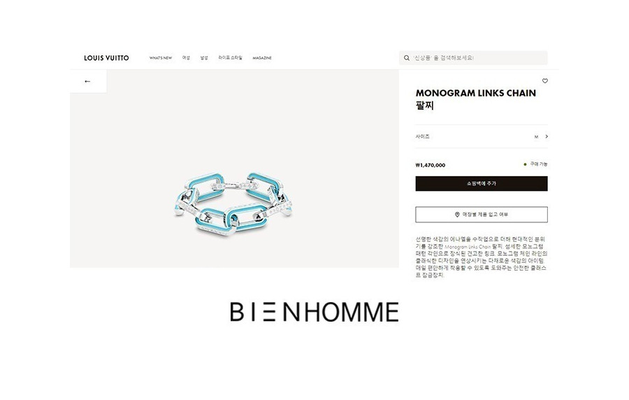 루이B통 모노그램 링크스 체인 팔찌 > JEWELLERY