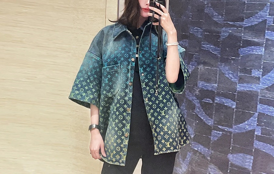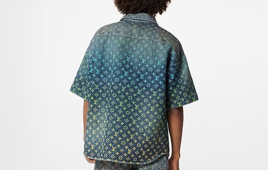 • 남녀공용 루이B통 레인보우 모노그램 쇼트 슬리브드 데님 셔츠 (1:1 HIGH PREMIUM)