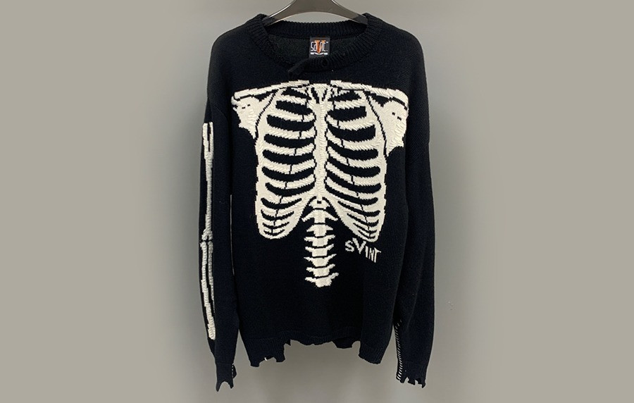 남녀공용 캐시미어 100% 세인T미카엘 스켈레톤 데미지 스웨터 (PREMIUM) > TOP