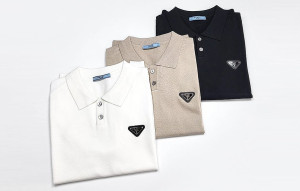 • 프RA다 삼각 플레이트 카라 폴로 니트 반팔 티셔츠 (3color)