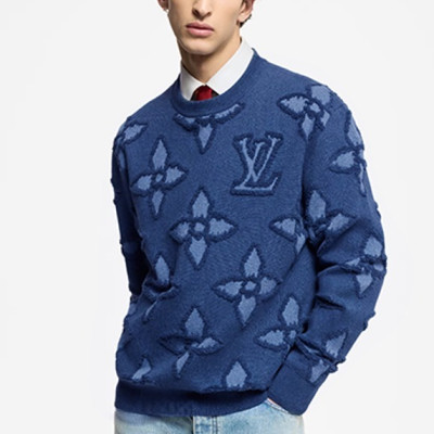 루이B통 모노그램 텍스처드 코튼 크루넥 니트 스웨터 (PREMIUM)