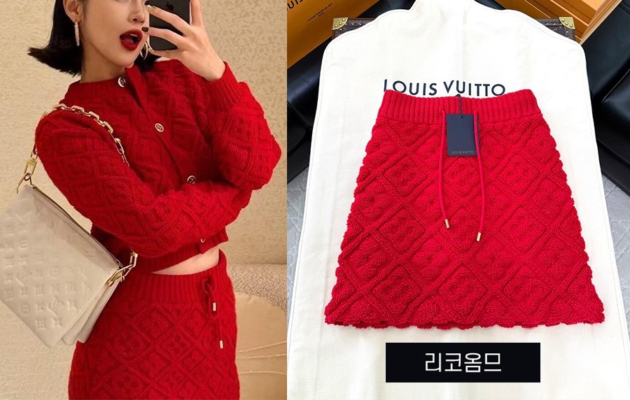 • 루이B통 우먼 모노그램 플러시 타월링 가디건 & 스커트 (1:1 HIGH PREMIUM)