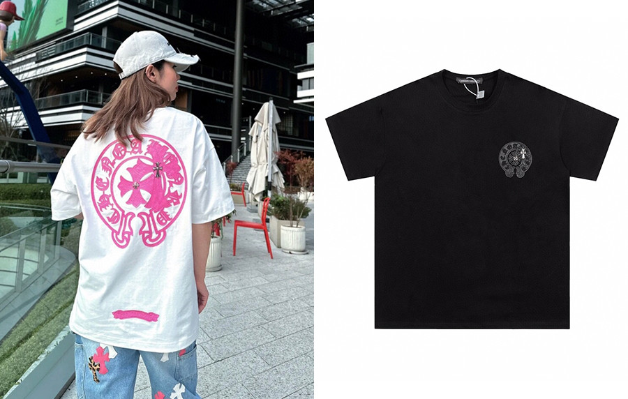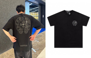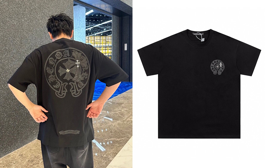 • 남녀공용 크롬HA츠 레더 홀스슈 더블 크로스 반팔 티셔츠 (PREMIUM)