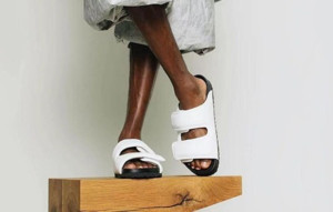 버켄S탁 X Di*gyun zha*g 코지 패딩 래더 샌들 화이트 > SLIPPER & SANDAL