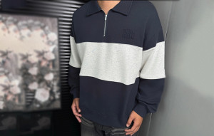 남녀공용 미*미* 스트라이프 트레피 하프집업 스웨트셔츠 (PREMIUM) > TOP