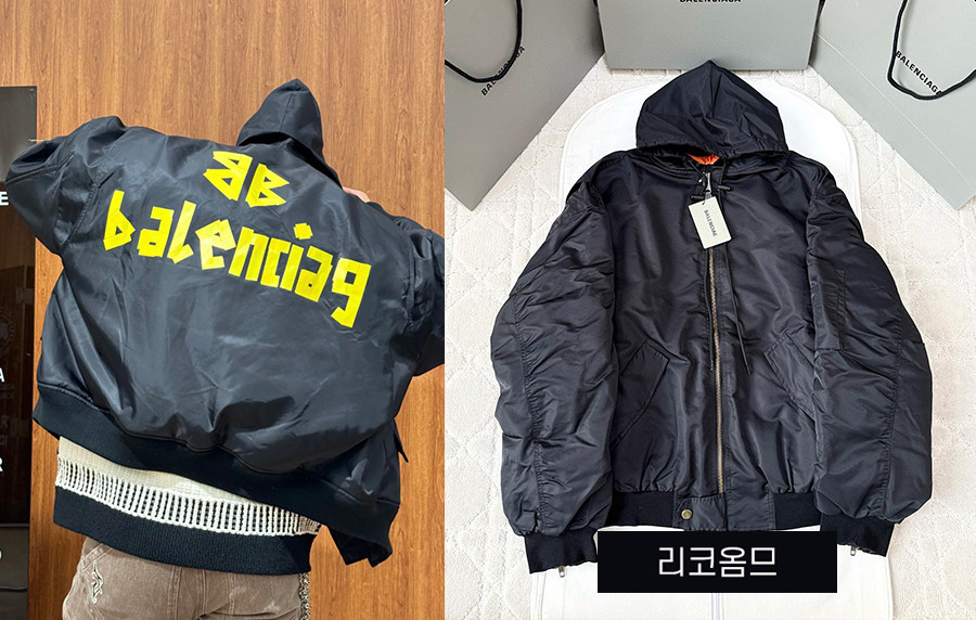 발렌시A가 테이프 타입 라이트 후디드 오버핏 보머 자켓 (1:1 HIGH PREMIUM) 요약정보 및 구매