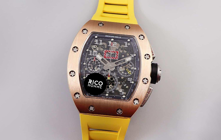 리차*밀 RM11-FM 펠리페 마사 크로노그래프 로즈골드 옐로우 러버밴드 40mm×50mm 1:1 최상급 (싱크 98.9%)