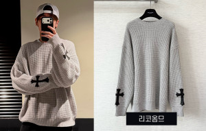 크롬HA츠 슬리브 레더 크로스 패치 니트 스웨터 (1:1 HIGH PREMIUM)
