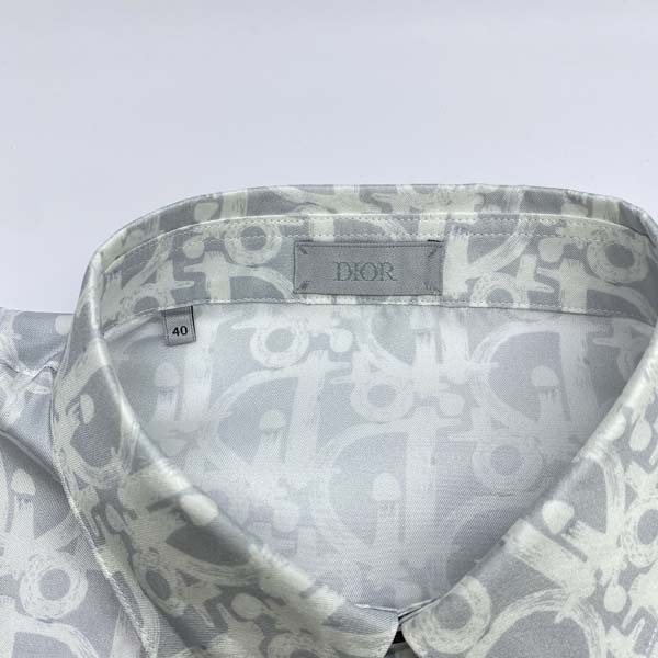 D올 오블리크 화이트 실크 셔츠 (PREMIUM)