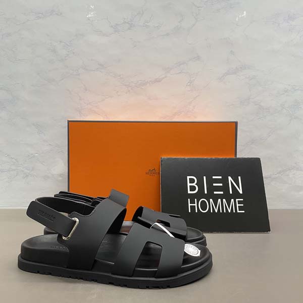 H르메스 플레인 레더 로고 샌들 (12color)