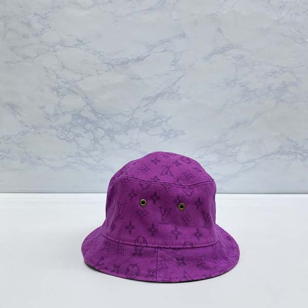 루이B통 모노그램 양면 데님 버킷햇 (퍼플)