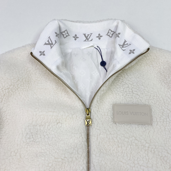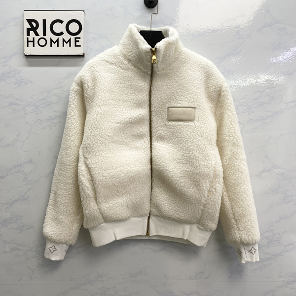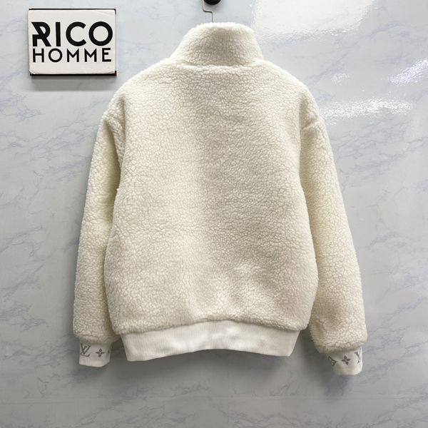 루이B통 레더 패치 플리스 블루종 자켓 화이트 (1:1 HIGH PREMIUM)