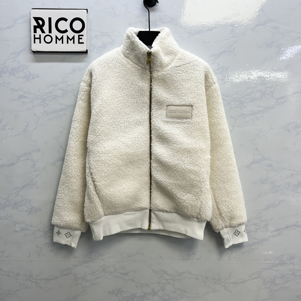 루이B통 레더 패치 플리스 블루종 자켓 화이트 (1:1 HIGH PREMIUM)
