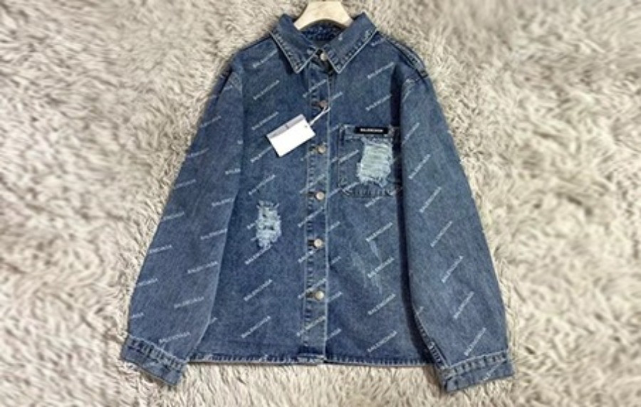 • 남녀공용 발렌시A가 리피트로고 데미지 데님자켓