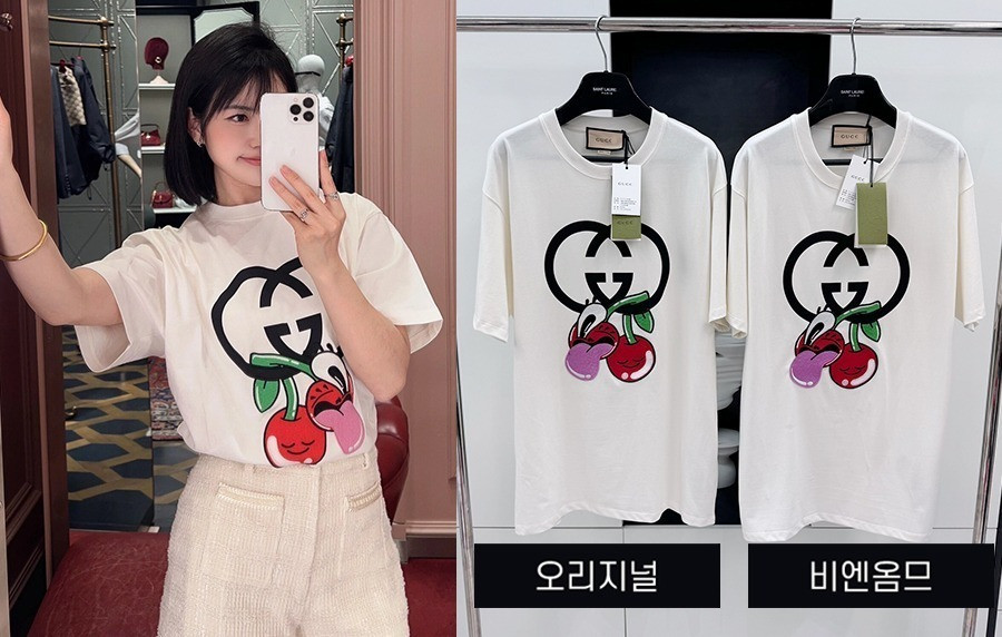 • 9찌 X Hattie Stewart 체리 프린트 반팔티 (1:1 HIGH PREMIUM)