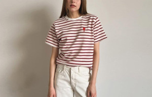• A미 레이디 스몰레드하트 단가라 반팔 (3color)