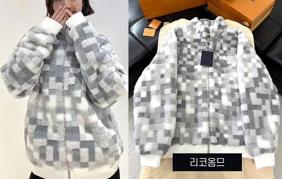 • 남녀공용 루이B통 다미에 카모플라주 플리스 블루종 자켓 (1:1 HIGH PREMIUM)
