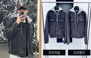 CEL*NE 차콜 워시 데님 패치워크 후디 트러커 자켓 (1:1 HIGH PREMIUM) > JACKET