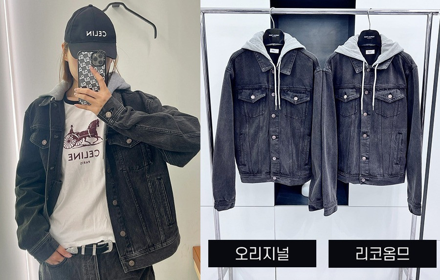 CEL*NE 차콜 워시 데님 패치워크 후디 트러커 자켓 (1:1 HIGH PREMIUM) 요약정보 및 구매