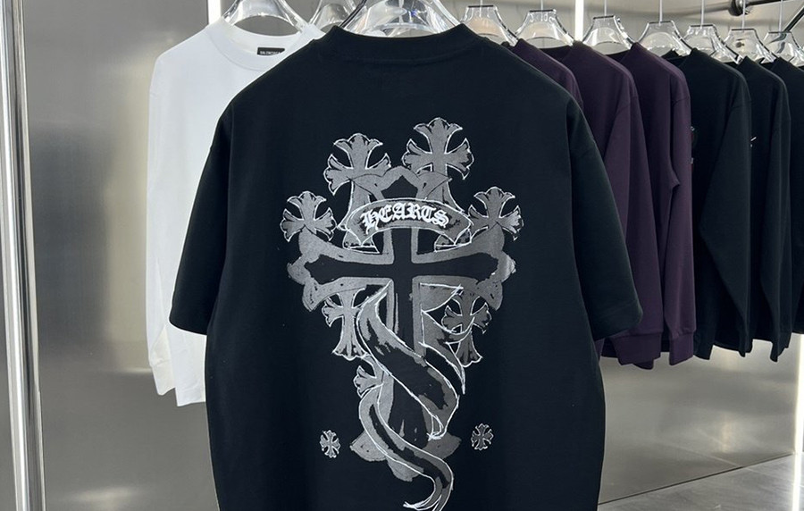 크롬HA츠 백 리본 크로스 반팔 티셔츠 > 1/2 TOP