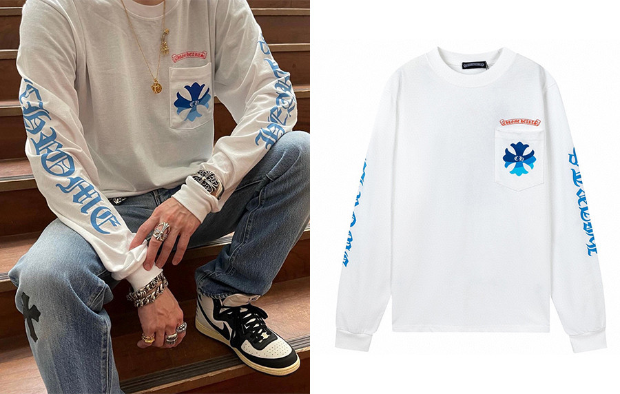 남녀공용 크롬HA츠 블루 웨이브 롱 슬리브 티셔츠 (PREMIUM) 요약정보 및 구매