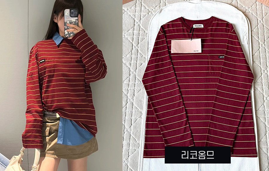 남녀공용 미*미* 아이코닉 스트라이프 롱 슬리브 티셔츠 (1:1 HIGH PREMIUM) > TOP