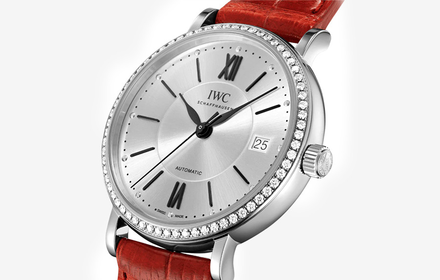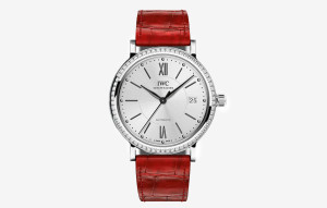 IW* 포르토피노 미드사이즈 오토매틱 실버다이얼 다이아 베젤 레드 레더스트랩 37mm 1:1 최상급 (싱크 97.6%)